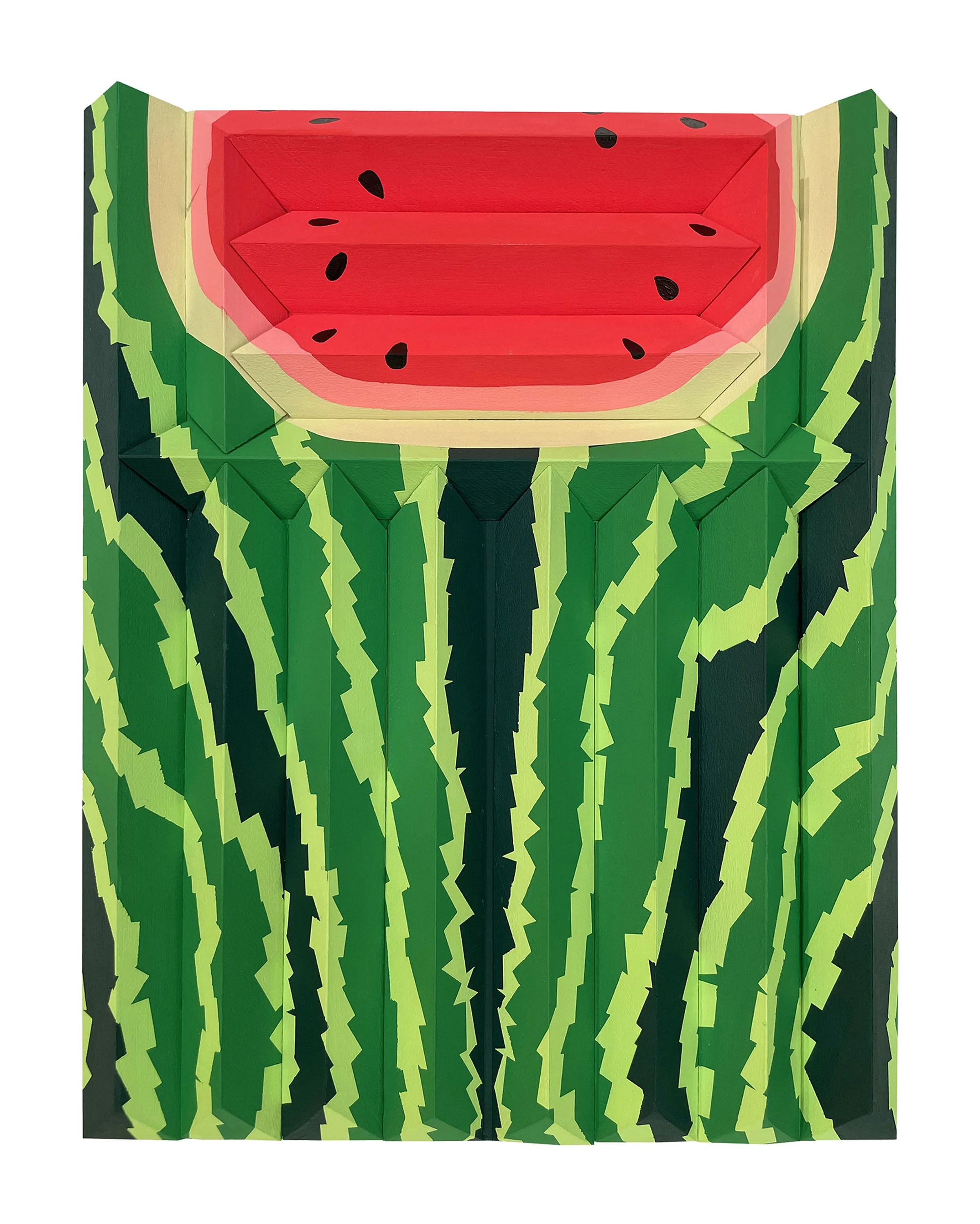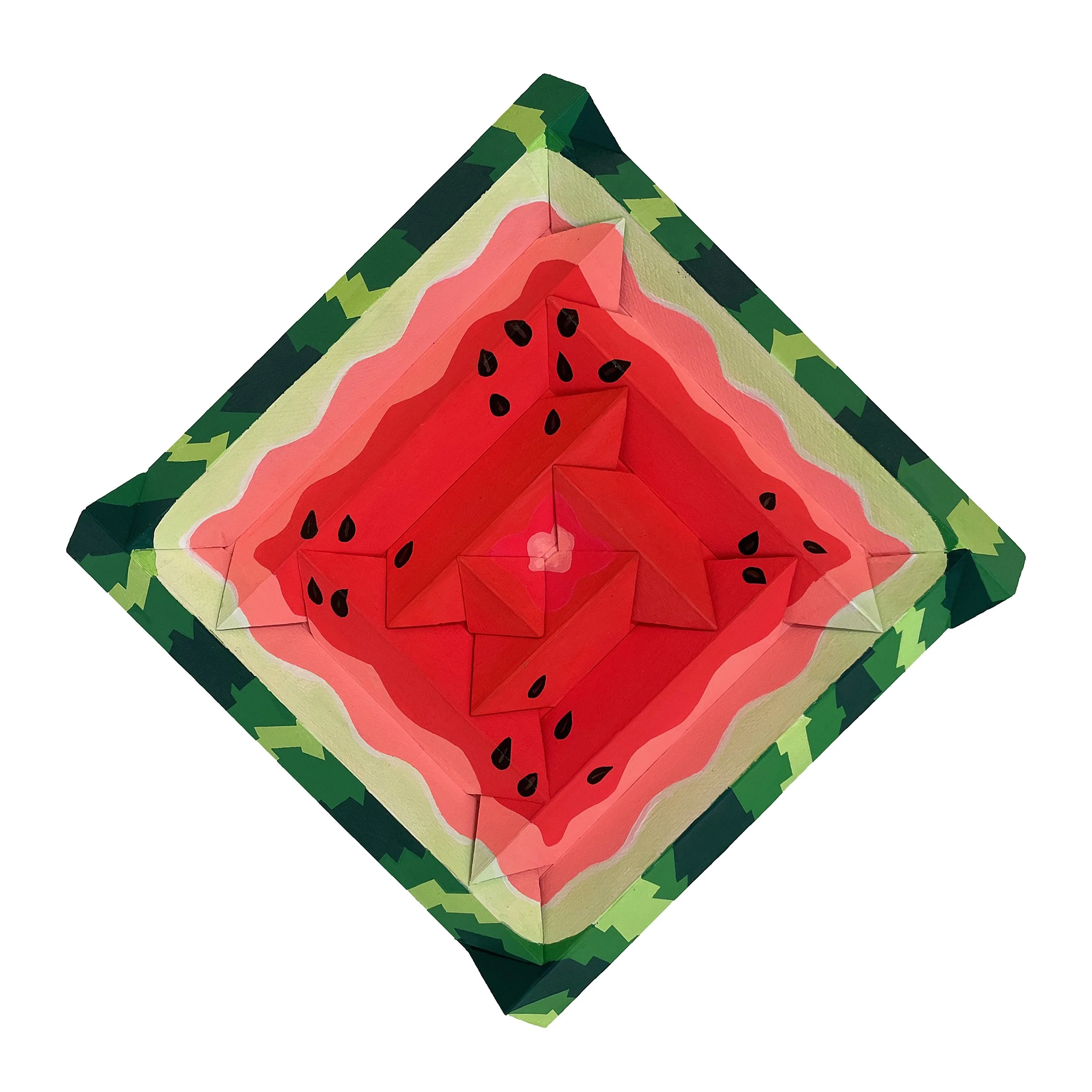 acrylic gouache on hand-built multidimensional wooden panel