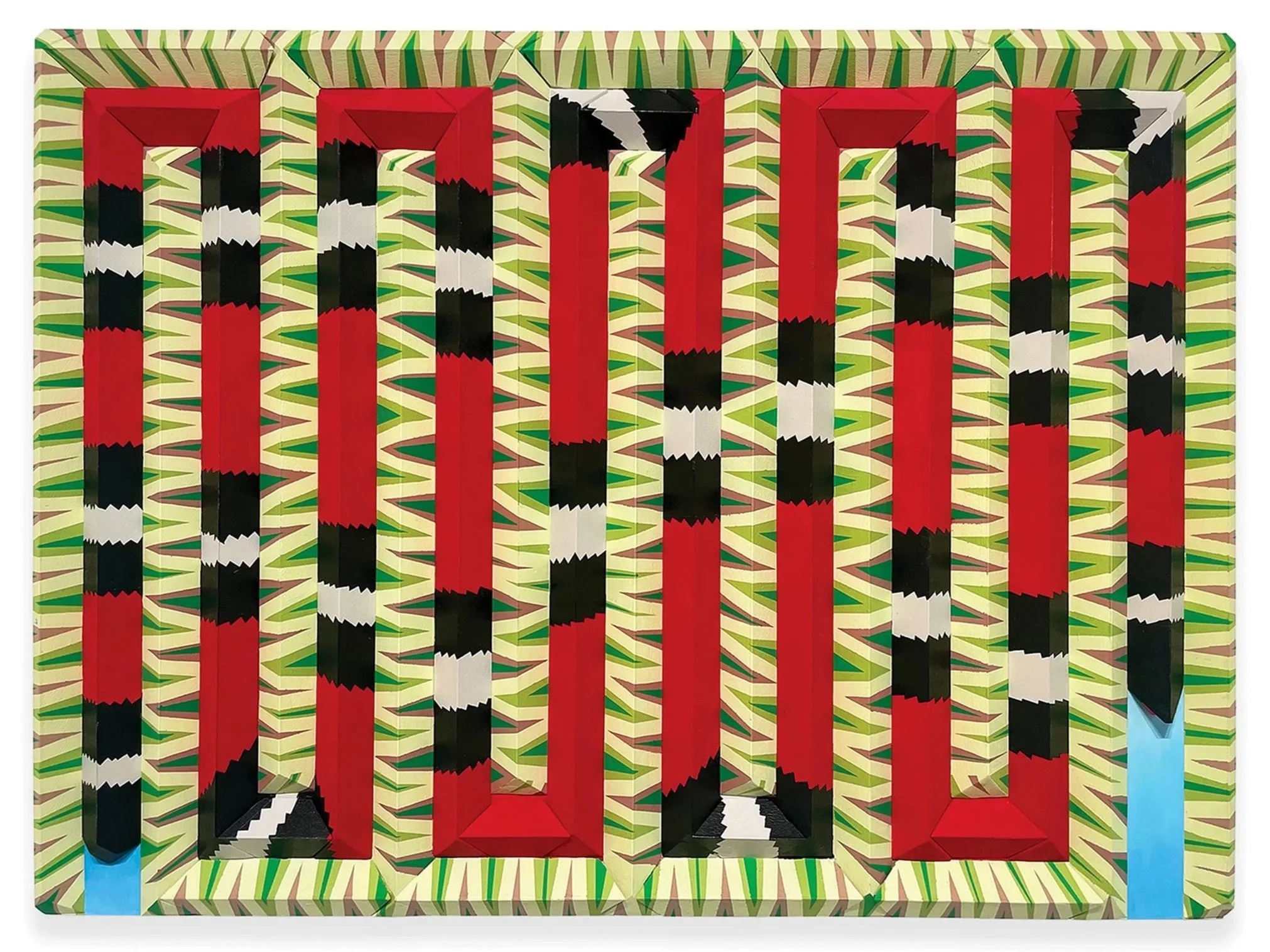 "For Michael Hambouz, who builds geometric environments and paints in delicately rendered patterns, it is the thing hiding in plain sight-a snake in the grass, one could say-that signals a confusion of reality. But the paintings are not running or hiding from reality. Instead, Hambouz deploys simplified and recognizable imagery, broken up across a three-dimensional picture plane, to unsettle expectations. This strategy of hiding realities just barely below the surface and using abstraction as a tool of obfuscation arises..."